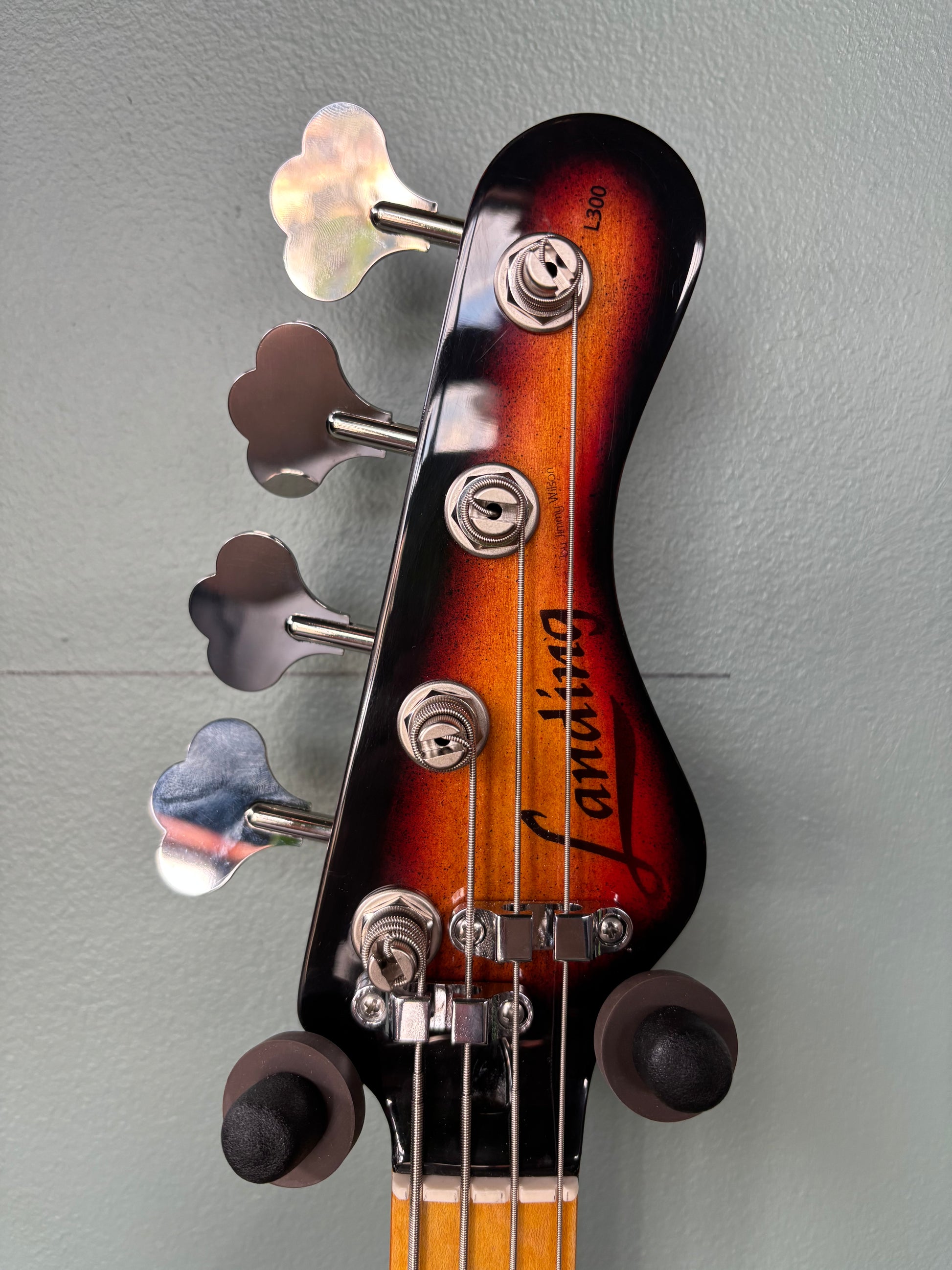 Hand built here in Pittsburgh, Pennsylvania by the gifted and unique Jimmy Wilson, Landing basses are unique, classy, and stylish while being SUPREMELY well-made and playable. This L300 is short scale, with 21 frets, an 18 volt active EMG preamp with 3 EMG pickups, a master volume, a 5-way blade switch, treble and bass controls. The hardware is all Hipshot, the tuning is stable, the versatility is sublime. Come try this incredible piece of Pittsburgh luthiery before it ends up in someone’s prized collection! Hardshell case included. 7.4 lbs.